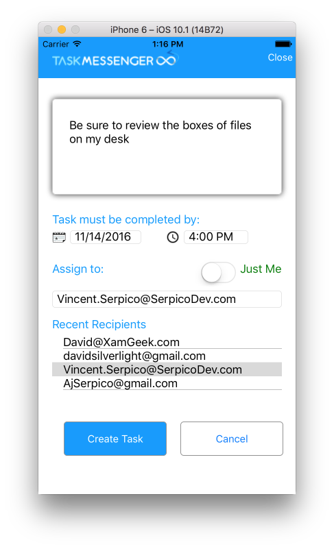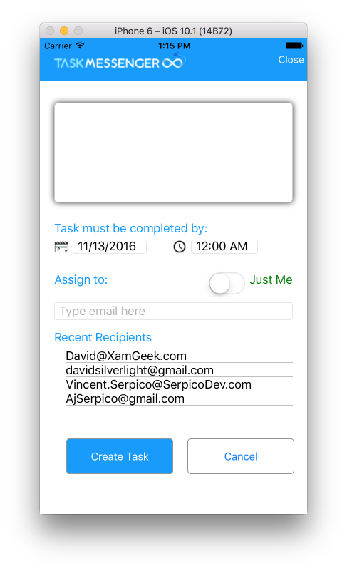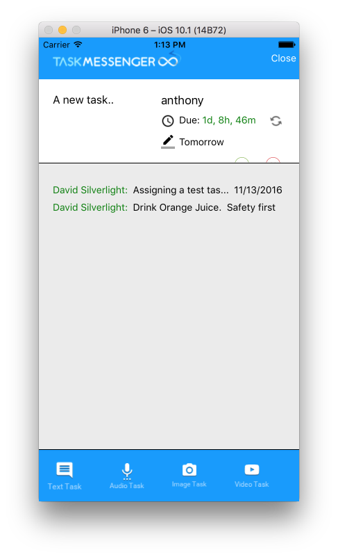 Task Messenger helps you assign and track day-to-day activities. Task messenger, was developed on Xamarin.Forms and supports iOS and Android.